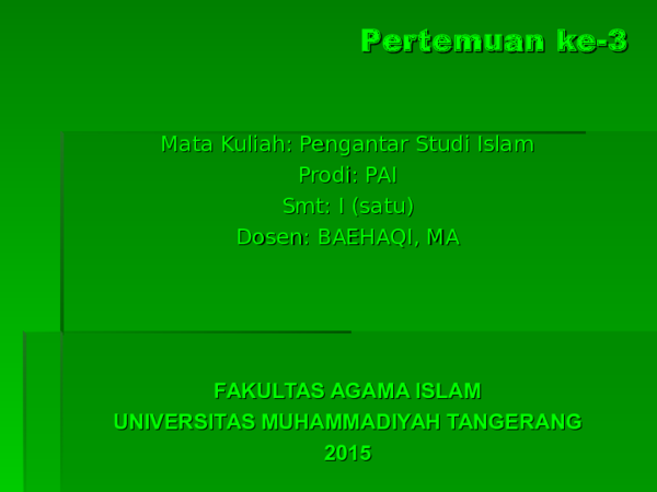 Pengantar Studi Islam Powerpoint. Kuliah 07 silakan dicek, info terbaru dari kuliah pengantar studi islam. Selamat menikmati liburan dan jangan lupa mencatat, memfoto, merekam, mengamati.